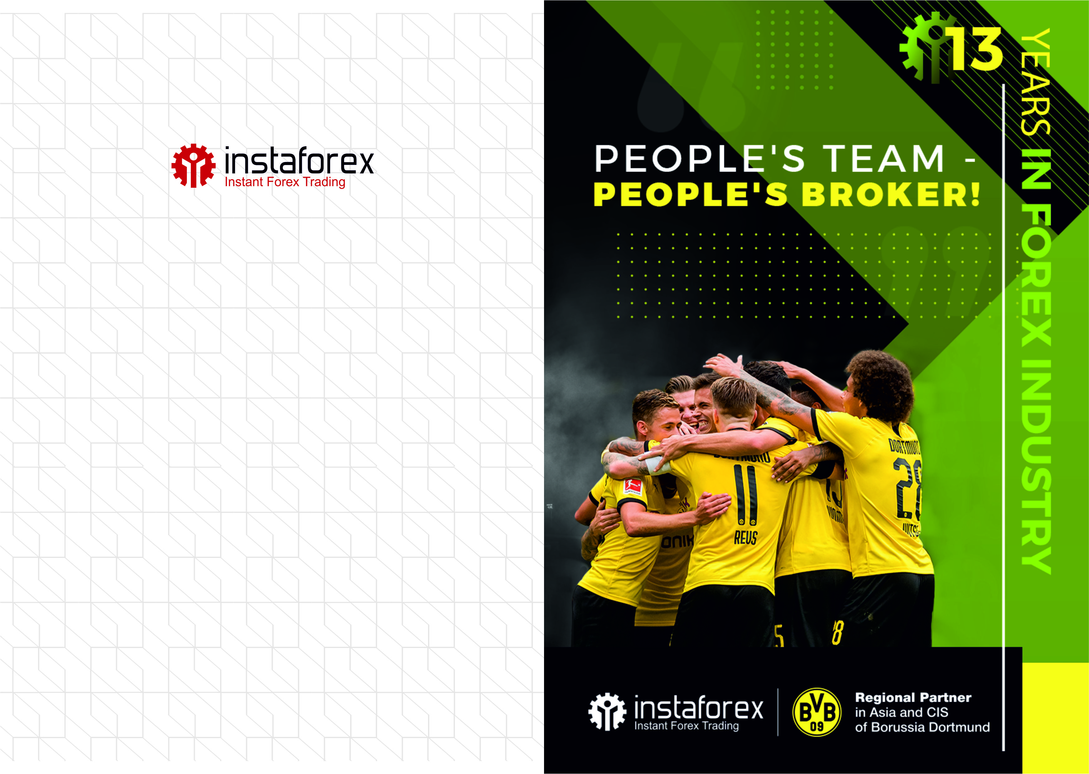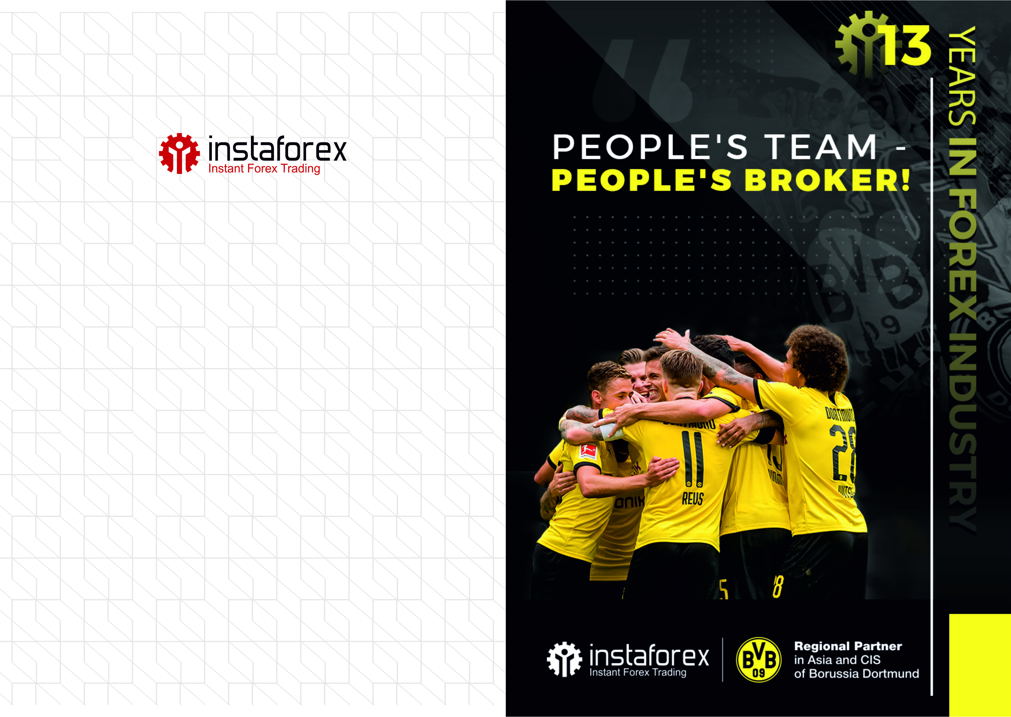 Серіктестерімізге жаңа маркетингтік құрал - фирмалық блокнот макеттерін, қағаз қалталарын және компанияның фирмалық логотиптері бар кеңсе өнімдерін пайдалануды ұсынамыз. Имидждік кеңсе компанияның ресми өкілінің таптырмас атрибуты болып табылады. «Брендтік кеңсе» ИнстаФорекс корпоративтік стиліне 100% сәйкес келеді. Сонымен қатар, компанияның фирмалық символикасы бар блокнот, қалталар және т.б. пайдалану белгілі бір іскерлік келіссөздер кезінде серіктеске ресми мәртебе береді.